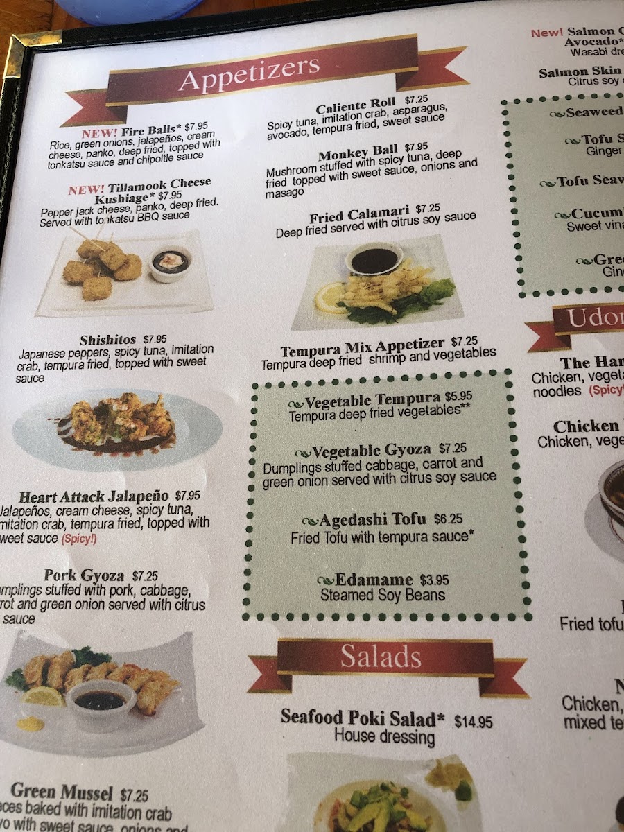 Start your meal with delightful appetizers like the Shishitos, or indulge in the Monkey Ball Mushroom, both showcasing exquisite flavors. For noodle lovers, the Tempura Udon and Nabeyaki Udon promise a warm, comforting experience. And if you're in for dinner, the Combination Platter allows for a taste of various undercooked meats, offering a perfect symphony of flavors.